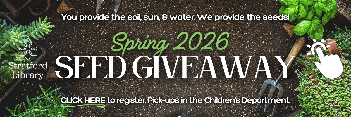 Home Join us at the Blackhawk Country Club on Saturday, April 25 at 6:30 pm for this year’s Library Gala, ‘April in Paris’! For tickets, click here. For all ages: Register for weekly seed giveaways in the Children’s Department! Click image for details. Big changes are coming to Stratford Library! Click here for construction updates. Introducing the Children’s Department’s Library of Things! Click here to explore. Click here for this month’s uCreate Space Open Hours and to request a reservation.