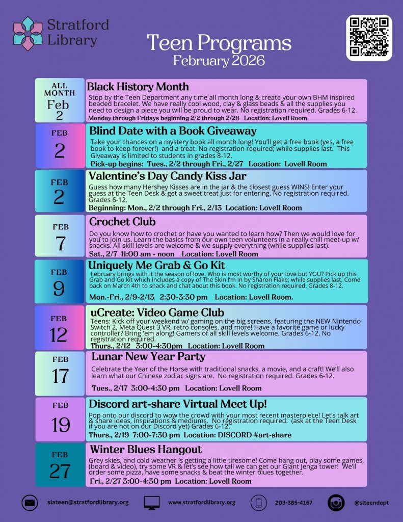NEW Programs & OLD Favorites By Teen Librarian on January 30, 2026 in Teen Click here for more information.